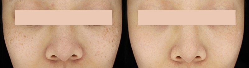 전체적인 피부 톤업과주근깨, 잡티 제거좌측 시술 전 : 25....